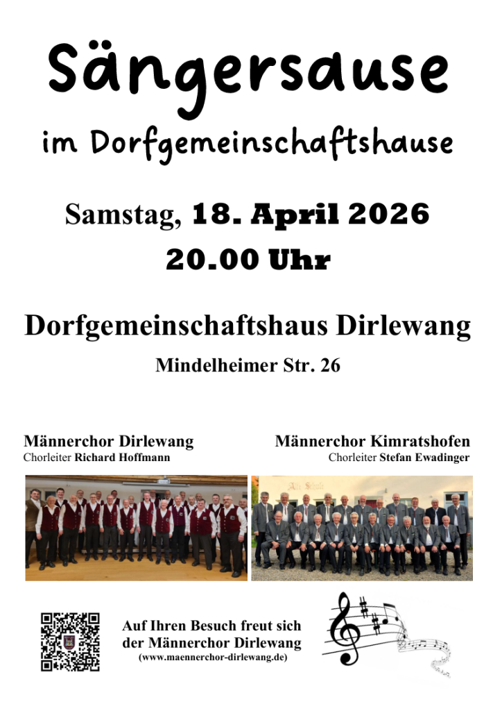 In einem völlig neuen Rahmen traten in diesem Jahr der Dirlewanger Männerchor bei ihrem Konzert „Sängersause im Dorfgemeinschaftshause“ auf und ernteten viel Applaus.